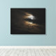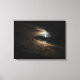 As the moonlight shines on clouds in the night sky, it creates beautiful and subtle colours. Near the moon, the illuminated clouds are a soft and luminous grey. Farther away, they take on a dusky rose glow. The moon itself is rising from behind a wisp of dark cloud that reaches across the moonlit area. Bring the mysterious beauty of moonlight to your home with this lovely lunar canvas print. This nighttime skyscape is also available on smaller canvas pieces.