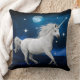 Moonlight theme Unicorn art print pillow design. Pretty accent pillow idea with Unicorn horse digital art.