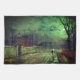 Kitchen Towel featuring John Atkinson Grimshaw’s painting A Moonlit Evening (1880). A haunting moon fills Victorian England’s night sky as a woman stands in a street lined with trees. In front of her is a lighted building. A great gift for fans of Romanticism and Victorian England.