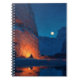 Find solitude and wonder with this striking notebook, where a lone camper sits beside a glowing fire beneath towering canyon walls and a full moon sky. The warm firelight against cool night blues creates a scene of peace, reflection, and adventure. Perfect for dreamers, writers, and wanderers, it’s a notebook where your thoughts can echo like starlight in the canyon.