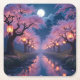 Moonlit Cherry Blossom Lanterns - Anime Landscape Square Paper Coaster