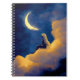 Capture your thoughts beneath the glow of the moon with this Moonlit Clouds Spiral Notebook. Featuring a serene illustration of a woman resting on golden clouds under a crescent moon and deep blue night sky, this notebook evokes calm, imagination, and quiet reflection.