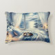 Moonlit Coastal Bedroom with Sleeping Cat Decorative Cushion