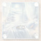 Moonlit Coastal Bedroom with Sleeping Cat Glass Coaster