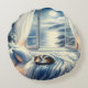 Moonlit Coastal Bedroom with Sleeping Cat Round Cushion