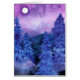 Moonlit Forest Original was 6x8” Watercolor and Coloured Pencil. A full moon rises above a misty twilight forest of fir trees, while stars twinkle in the sky. Artwork by Carmen Medlin.