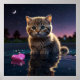 Enchanting digital art poster featuring a fluffy kitten bathed in moonlight, reflecting on a love lost. The quote, 'I gave you my heart, but forgot to keep a map to find my way back,' adds a touch of melancholy to the whimsical scene. High-quality print perfect for adding a touch of magic to any room.
