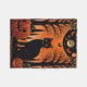 A sleek black cat sits perched beneath a glowing full moon, casting an enigmatic silhouette against the vibrant orange sky. Silhouetted trees and pumpkins scattered below add a touch of whimsy to the scene. Did you know that in ancient Egypt, cats were revered as sacred animals and were often associated with the goddess Bastet, who represented protection, pleasure, and good health? This artwork captures the mystique of Halloween night and the feline's enduring connection to the supernatural.
