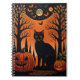 A sleek black cat sits perched beneath a glowing full moon, casting an enigmatic silhouette against the vibrant orange sky. Silhouetted trees and pumpkins scattered below add a touch of whimsy to the scene. Did you know that in ancient Egypt, cats were revered as sacred animals and were often associated with the goddess Bastet, who represented protection, pleasure, and good health? This artwork captures the mystique of Halloween night and the feline's enduring connection to the supernatural.