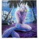 Moonlit Mermaid shower curtain by Michaeline McDonald features a pretty mermaid sitting on the beach brushing her hair against a starry sky painted in purples. Perfect for a nautical or mermaid themed bathroom!