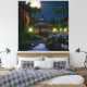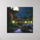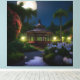 Relax in the gazebo under a moonlit night, surrounded by beautiful trees and garden flowers.