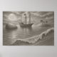 Moonlit Pirate Ship Drawing – Nautical Fantasy Poster