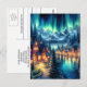Moonlit Reflections: Night Lake With Houses Postcard