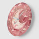 This charming large wall clock features a rustic moon design with soft shades of red. Its unique, textured surface adds warmth and character to any room. Perfect for a child's bedroom, nursery, or any space needing a touch of whimsical, classic, and colorful decor.