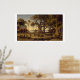 Moonlit Scene of Indian Figures and Elephants amon Poster