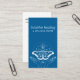 Elegant business cards for psychotherapy studio, energy healing, life guidance, yoga or massage studios, massage therapy, meditation teacher, natural health counsellor, spas or wellness professionals feature a white illustration of a two opened hands creating energy with a spiritual moth a third eye moon and stars in solid sky blue colour background.