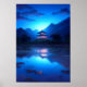 Indulge in the serene beauty of our "Moonlit Serenity" poster. This digital art piece showcases a small, traditional Japanese temple situated on a hill overlooking a calm and beautiful lake. The temple's white walls stand out in the moonlight, while the surrounding trees create a tranquil and peaceful atmosphere. Hang this poster in your bedroom or meditation space to create a serene and calming atmosphere.