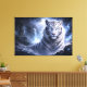 Moonlit White Tiger Guardian – Blue Fantasy Spirit Canvas Print