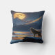 Moonlit Wolf Howls on Snowy Mountain Ridge Cushion