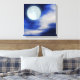 Moonscape print - mixed media graphic design, digitally enhanced photographic montage of the full moon, surrounded by a faint halo, against a deep blue night sky and moonlit clouds