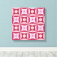 Based upon an Amish Pattern called "Hole in the Barn Door", this design is done in a pink harmony with Moonstone Rose and Cherry Flowers. A minor optical illusion does happen, try focusing on the circles, squared, or cross.