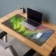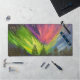 Transform your workspace with a glimpse of twilight wonder. This desk mat features my original Aurora painting—an abstract expression of that fleeting moment between day and night, when pine trees turn to silhouette and the sky erupts in streaks of green, gold, pink, and indigo. A scattering of stars finishes the scene, quietly watching from above.