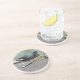 This pretty sandstone coaster features a photograph of a Moorhen, a pretty water bird with a distinctive yellow-tipped red beak found in Great Britain. This individual is standing on the bank of a calm lake perhaps enjoying the summer sunshine.