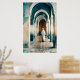 Beautiful Moorish architecture alley and an Arabic man in blue and khaki cream colour shades