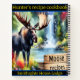 A grand moose stands gracefully near a tranquil waterfall surrounded by vibrant autumn foliage, embodying the essence of wilderness and natural beauty.