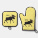 Moose cartoon illustration oven mitt & pot holder set