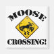 A funny moose crossing sign warning drivers of the dangers of hitting a moose on the road.