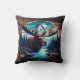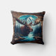 Moose in Mountain Landscape With River and Trees Cushion