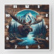 Moose in Mountain Landscape With River and Trees Square Wall Clock