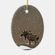 Vintage John Bauer artwork depicting a moose standing in the snow between two trees.
