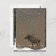 Vintage John Bauer artwork depicting a moose standing in the snow between two trees.