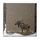 Vintage John Bauer artwork depicting a moose standing in the snow between two trees.