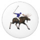 A polo player, swinging his mallet, while riding a moose. (Alces alces). Actually, riding a moose as if it were a horse is not unheard of. Moose are easily trained when they are young and become close to their handlers. Sweden and Russia, and possibly some other Scandinavian countries experimented with moose cavalry units. Moose are far superior to horses as mounts in often marshy tundra and northern forests. Moose as cavalry mounts ultimately failed as the animals could not become accustomed to the noise created when weapons are fired.