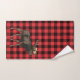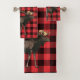 A timeless buffalo plaid pattern in red and black featuring a walking moose illustration. Plaid never goes out of style. Perfect for home bathroom decor or rustic cabin decor.