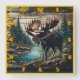 Moose Standing by a Stream in a Forest Setting Square Wall Clock