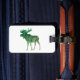 This design is the outline of a moose with a green to beige colour gradient and the silhouette of a tree inside.