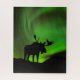 Moose with Green Aurora Borealis, Alaska Jigsaw Puzzle