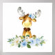 Moose, Woodland Animals, Boho, Blue Flowers Poster