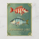 It features two gorgeous freshwater fish (bass), each with stripes in the nautical colours red and blue. Plus, it has all the essential info, like Moosehead Lake' coordinates and the customisable text for the state and/or city.