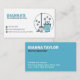 Mop and Bucket Cleaning Service Business Card. Easily customisable to your business needs. Blue and white colour scheme and illustrated logo.