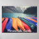 Colourful canoes stack up at Moraine Lake in Banff National Park, Canada.
