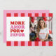 Celebrate love in style with this More Amor Por Favor Valentine Photo Card, featuring bold retro typography in romantic red and pink tones paired with a modern photo layout. Perfect for Valentine’s Day, anniversaries, or simply reminding someone how much they mean to you.
