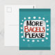 "More Bagels Please" is a fun text design with a white accent shape surrounded by white whimsical textured dots.
