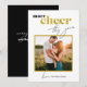 This modern holiday card has a more cheer this year greeting that features gold glitter and a photo.