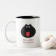 Mug with cute and funny print with cat and coffee and "more coffee, less worries" text. For coffee lovers gift.