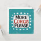 "More Corgis Please" is a cute text design in blue with black and red text, along with a white accent shape and white textured whimsical dots surrounding it.